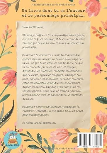 Ce carnet souvenir s'adresse à toutes les mamans qui souhaitent transmettre leurs souvenirs, leurs valeurs et leur histoire à leurs enfants. C'est un cadeau émotionnel parfait pour créer un lien unique entre générations.